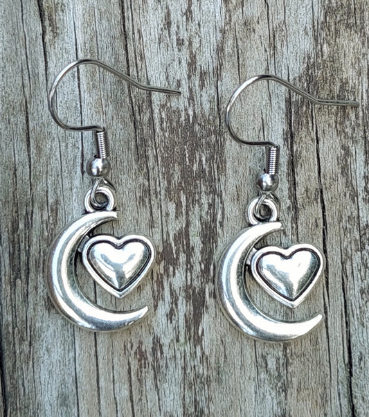 Crescent Heart Charm Earrings