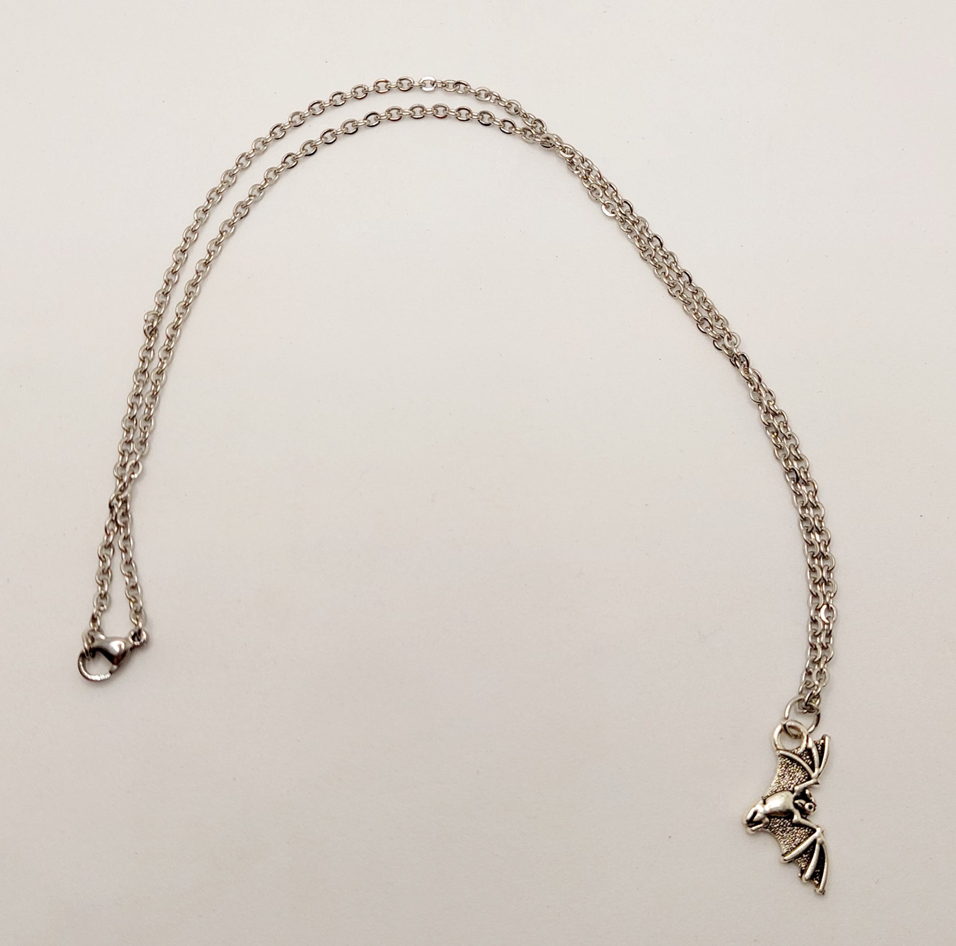 Bat charm on 18 inch stainless steel chain.