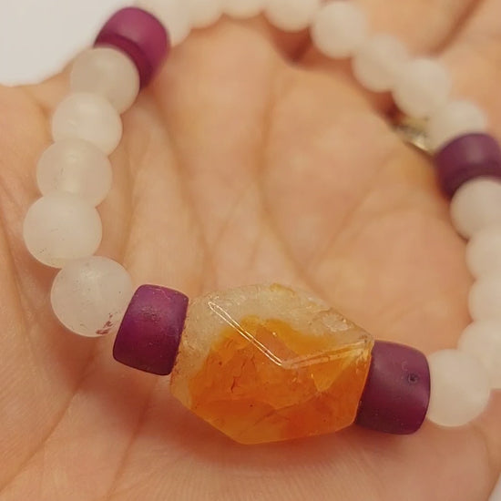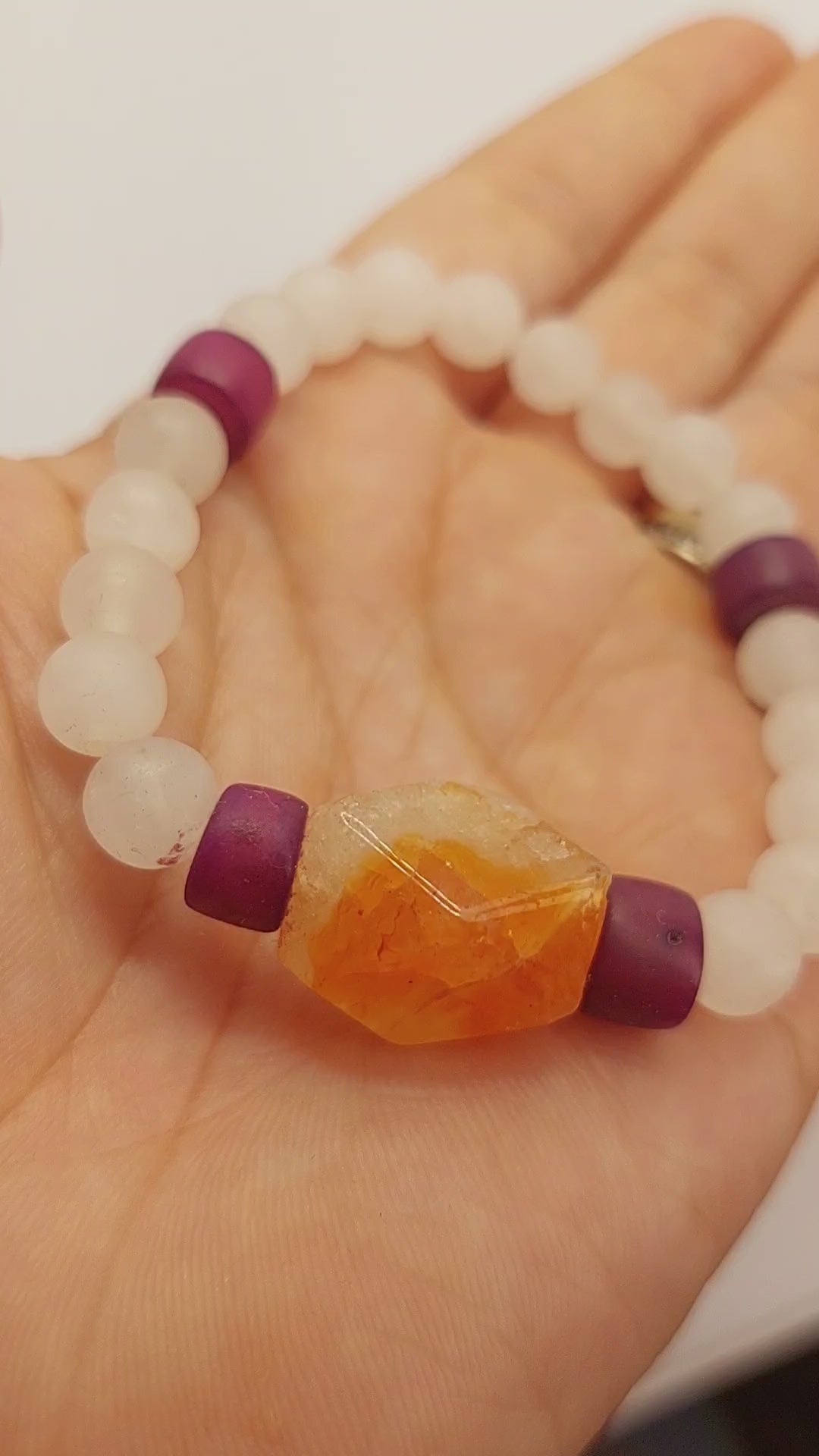 Frosted matte rose quartz with rubber burgundy accent beads and carnelian focal beaded elastic stretch bracelet.
