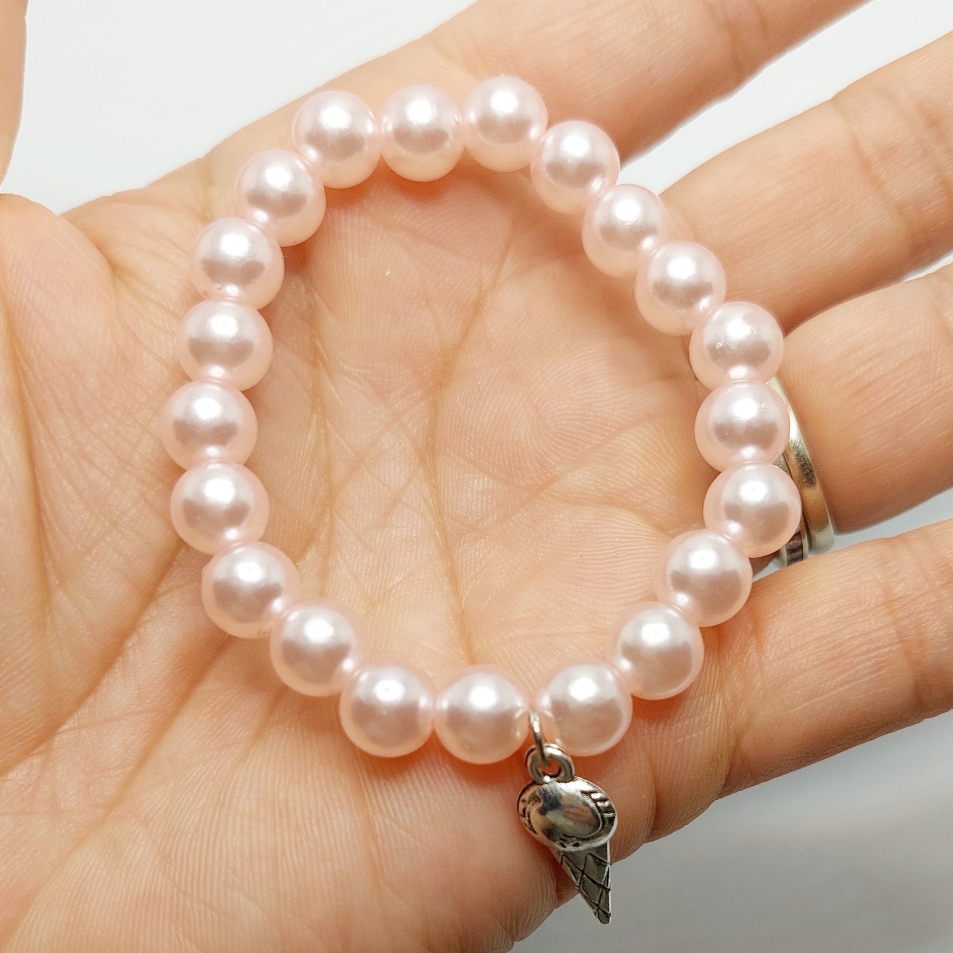 Beaded elastic stretch bracelet for children with ice cream cone charm.