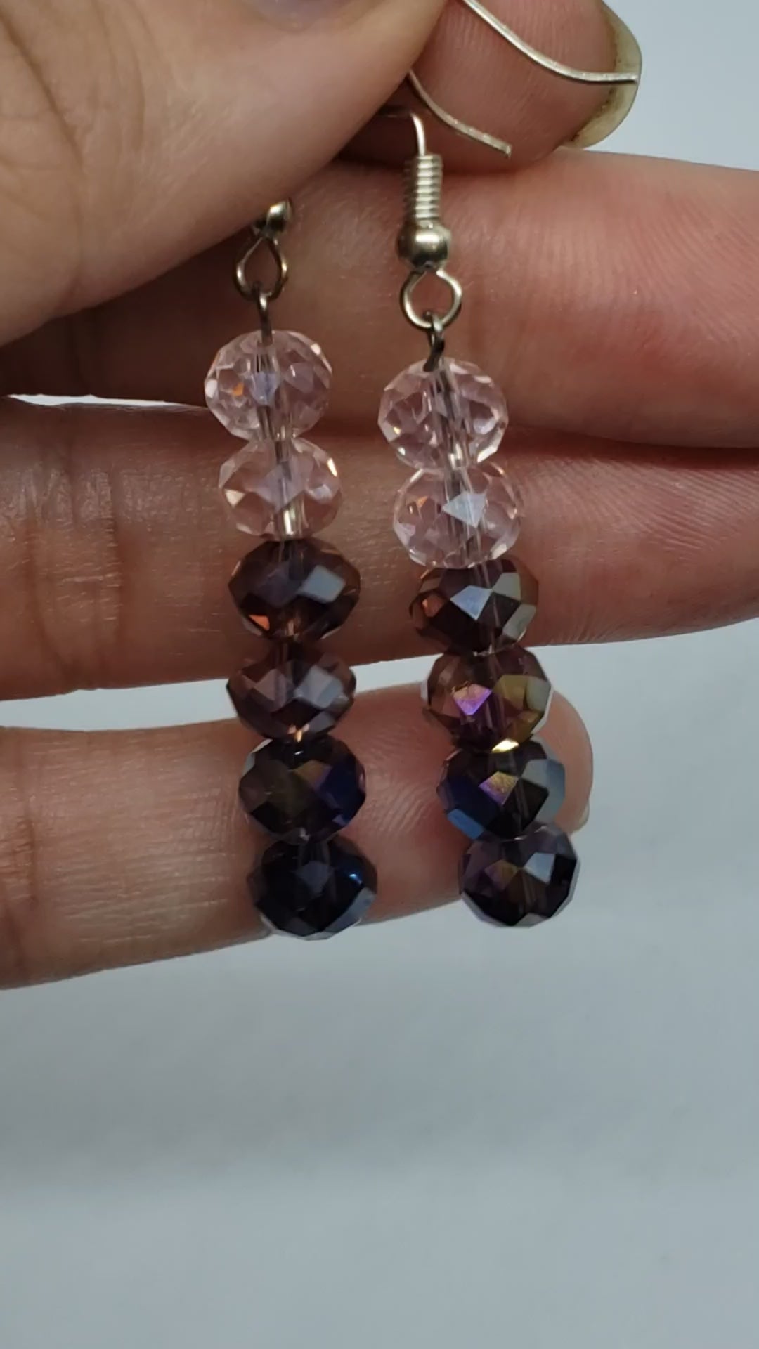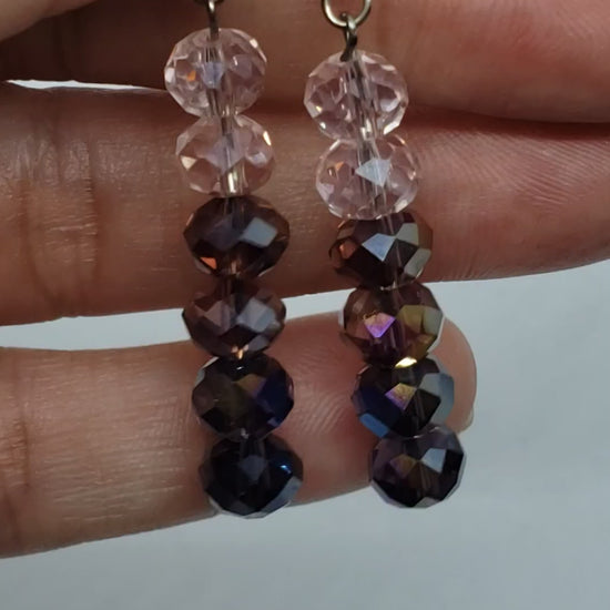 Faceted beaded dangle earrings in an ombre pattern with stainless steel hypoallergenic earring hooks.